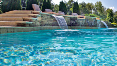 شلالات المياه او ما تسمى بستائر المياه تضيف الى حمام السباحة مناظر جمالية وخلابة للطبيعة حيث يمكن تصميمها بالصخور الطبيعية والصناعية كما يمكن عمل اضاءه داخلها فتعطى شكل جميل وراقي حيث يمكن تنفيذها فى أضيق الأماكن او أوسعها بجميع الأشكال حسب رغبة العميل .